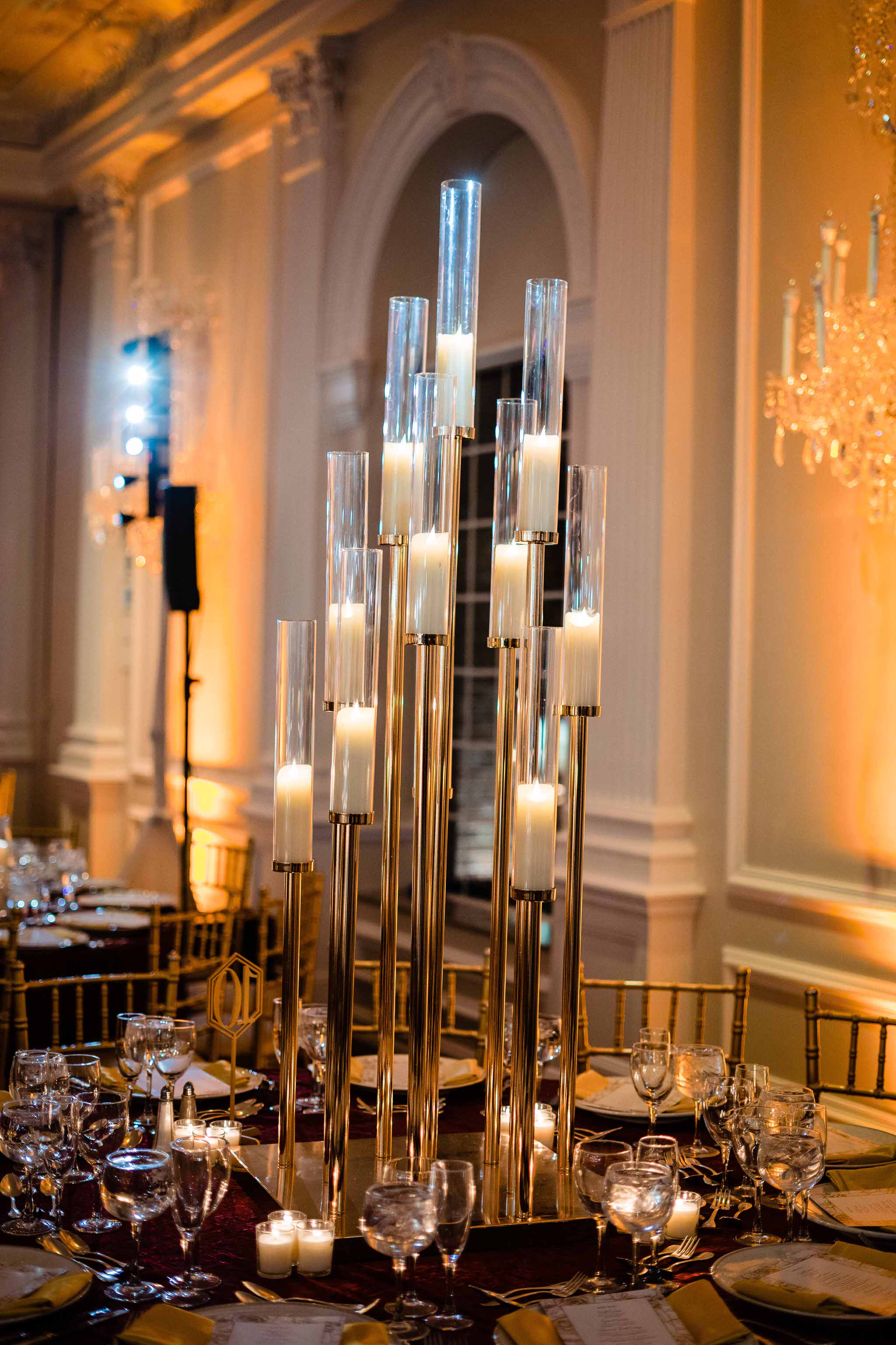 Just like the stunning outdoors, the indoors of The Rockleigh wedding venue in NJ are equally gorgeous. From the stately entrance and striking marble staircase in the lobby to the tastefully designed and furnished dressing suites and glamorous furnishings enhanced with classic architecture, this is your dream place to wed. The sparkling grand ballroom with brilliant crystal chandeliers glowing over the dance floor and polished marble floor provides a perfect setting for a lavish affair. This palatial indoor space can accommodate up to 300 or more guests. The extensive dance floor and spacious cocktail space complement your wedding reception. You can also have your dancing and dinner arrangements in the Bristol Room, conveniently accommodating up to 275 guests. Its artistic light fixtures, marble dance flooring, and palladium windows elevate the entire space's appeal, making it ideal for your momentous event.